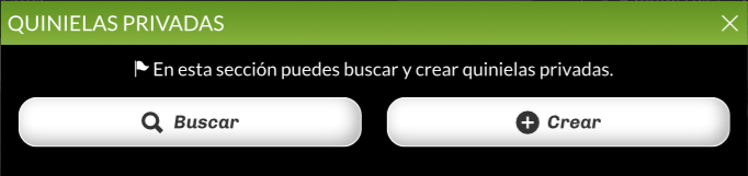 Te preguntará si quieres buscar o crear una quiniela, escoge “+ Crear“.