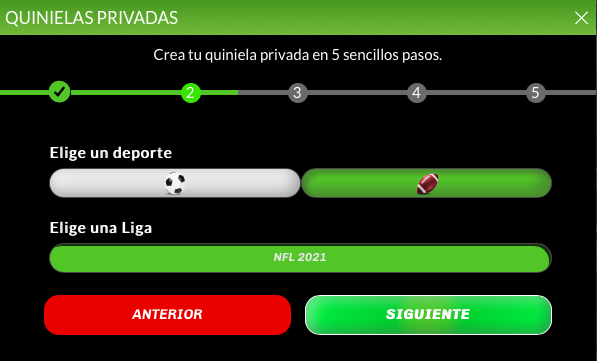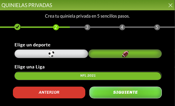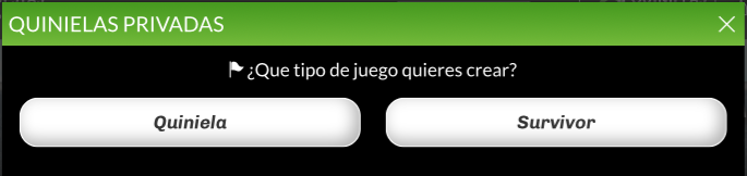 Después, podrás escoger entre crear una quiniela o un survivor privado. Escoge el que corresponda, en este caso: “Quiniela“