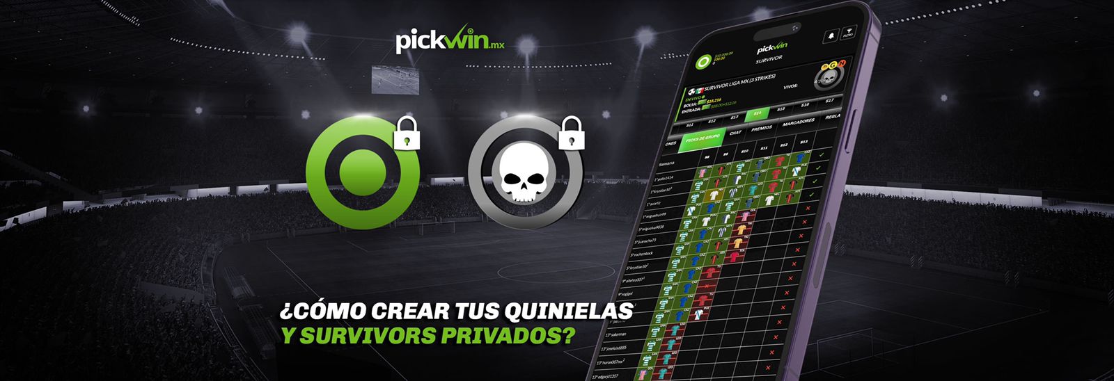 En Pickwin puedes crear tus propias quinielas ( y survivors), personalizarlas, protegerlas con una contraseña e invitar a quien tú quieras a participar.
